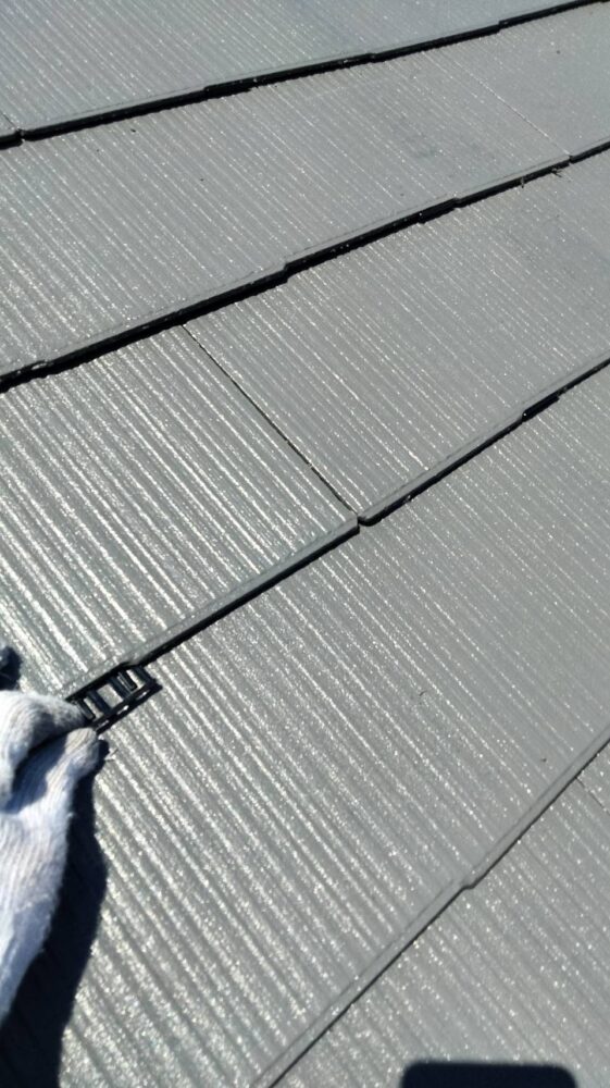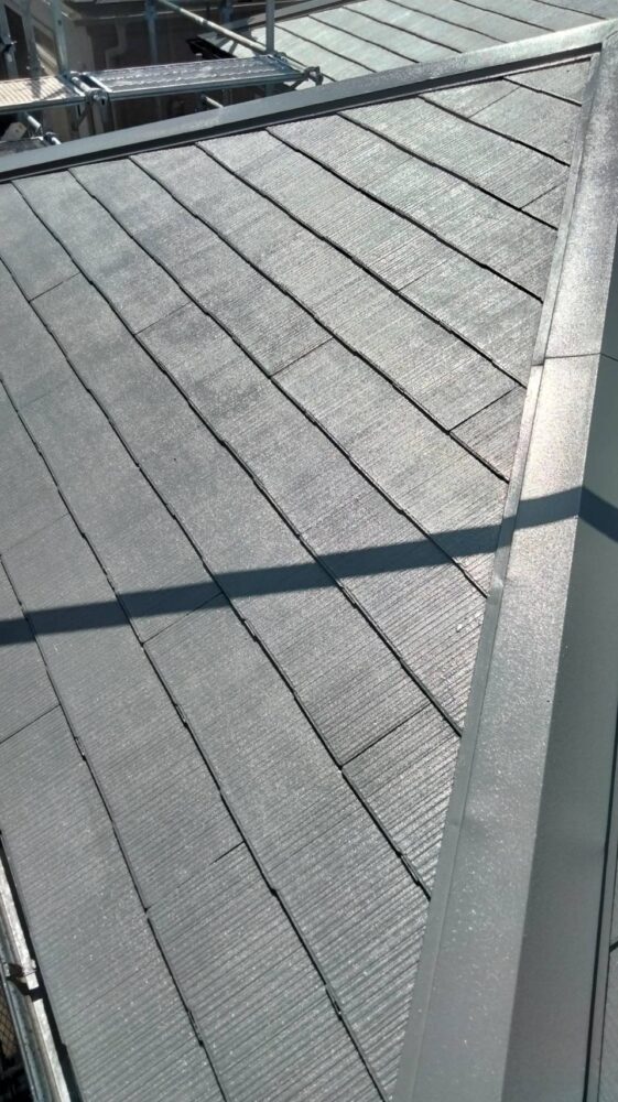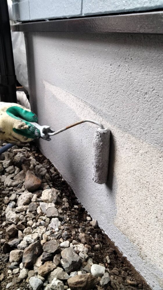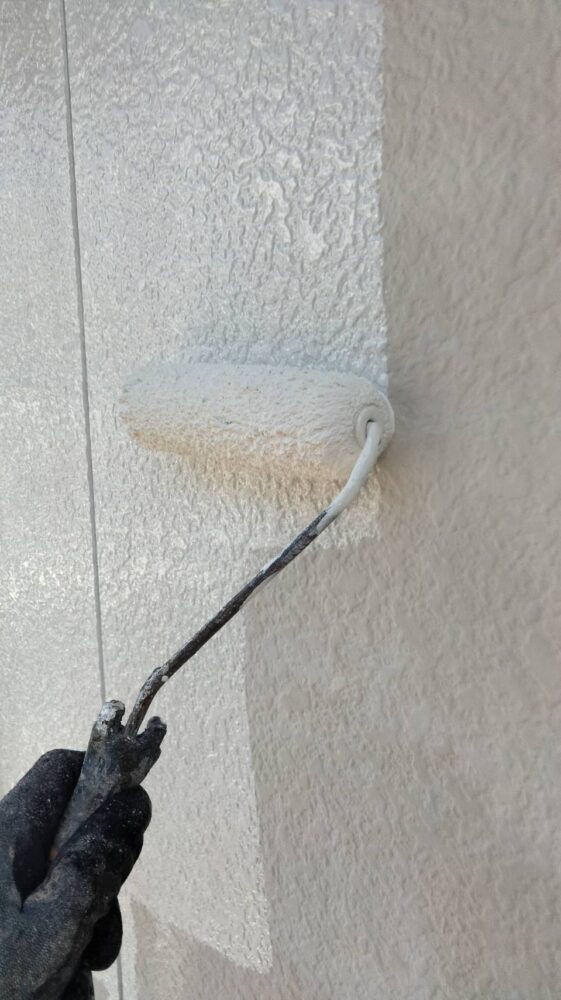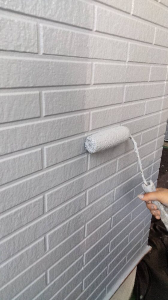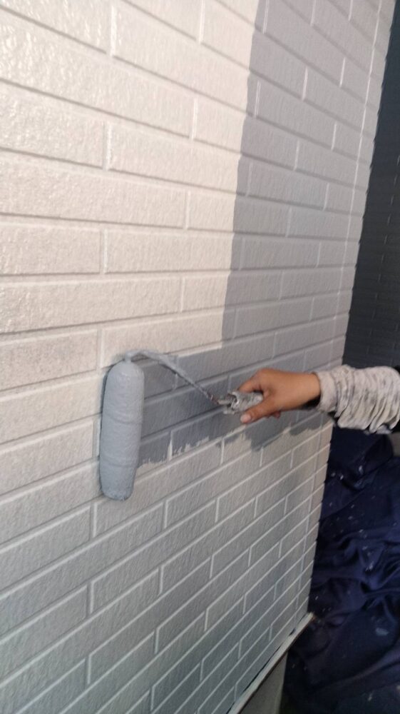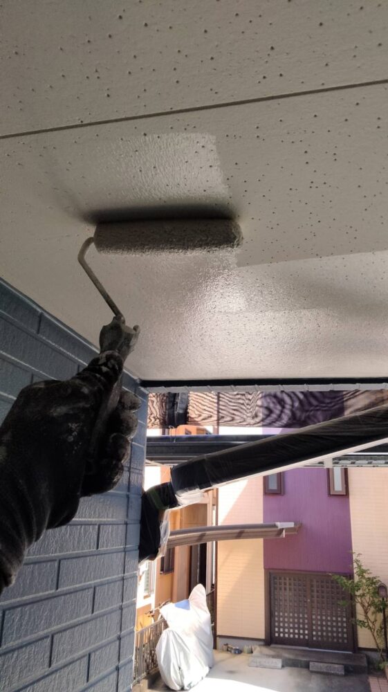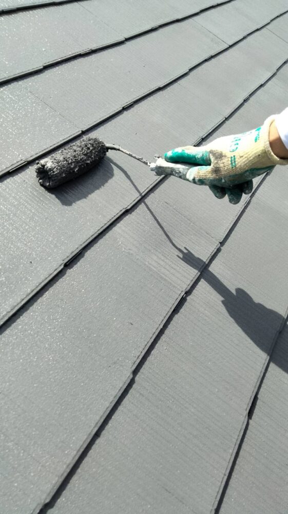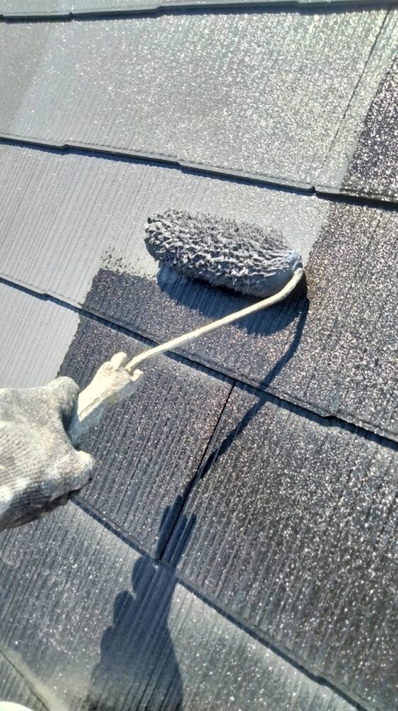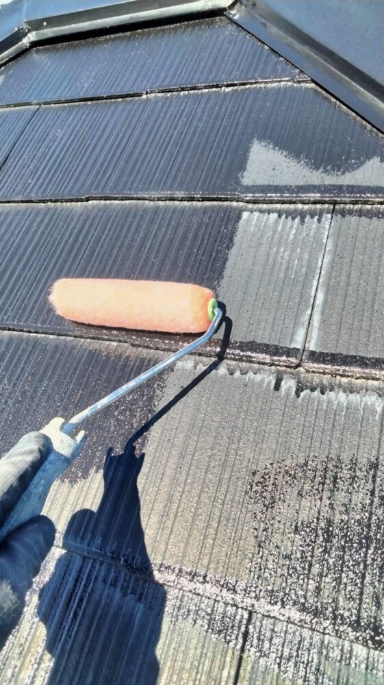 屋根の下塗りです。今回は下塗りを2回行います。屋根塗装