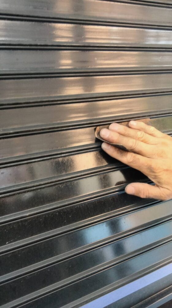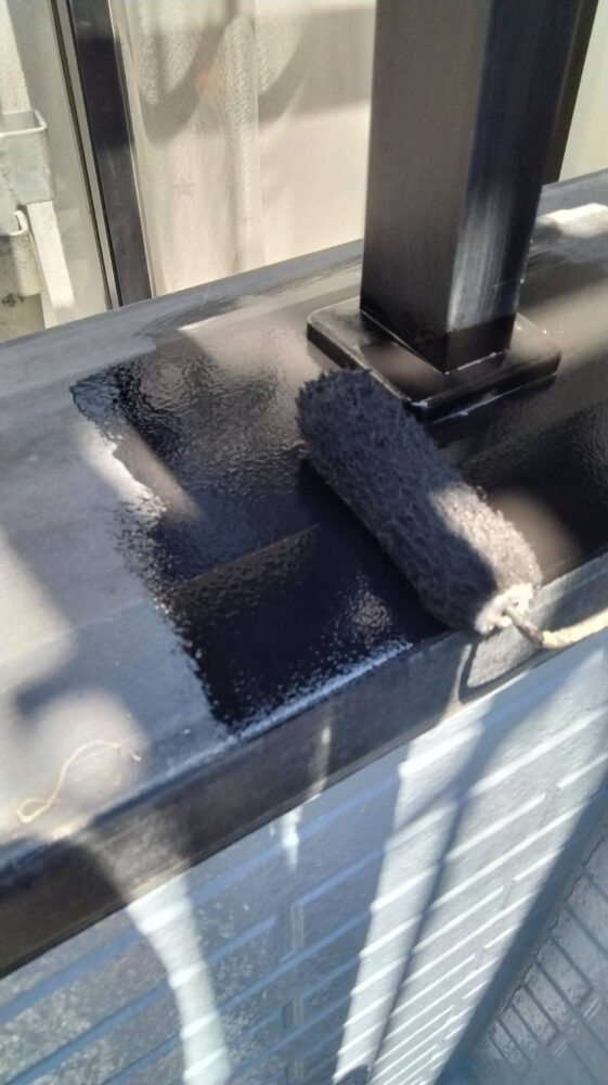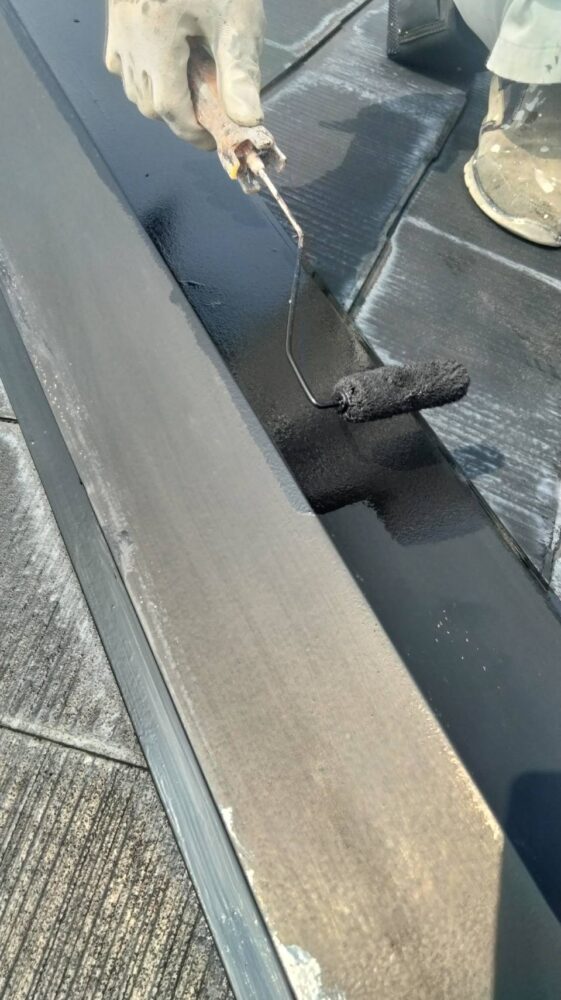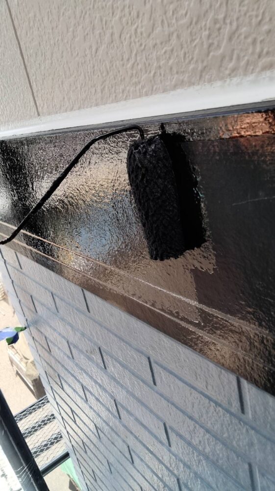 付帯部の塗装に入ります。錆止め塗料を塗布した後、同様に中塗り・上塗りと塗装します。付帯部塗装