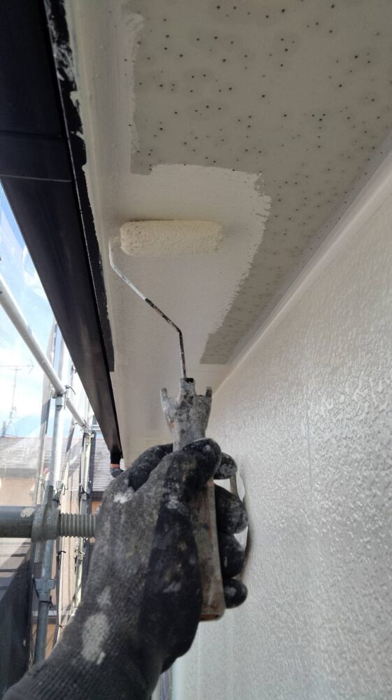 中塗りに入ります。仕上げ塗料は2回塗りします。屋根塗装