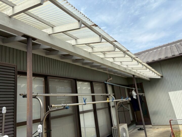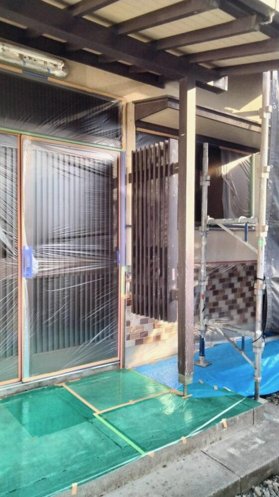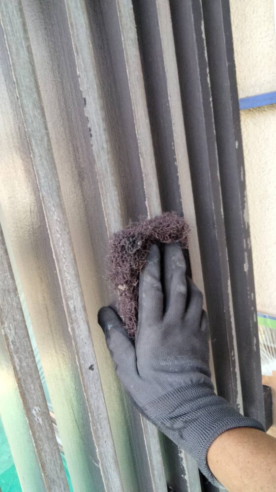 金属部、木部のケレン作業を行います。金属部は錆や汚れを落とします。養生作業