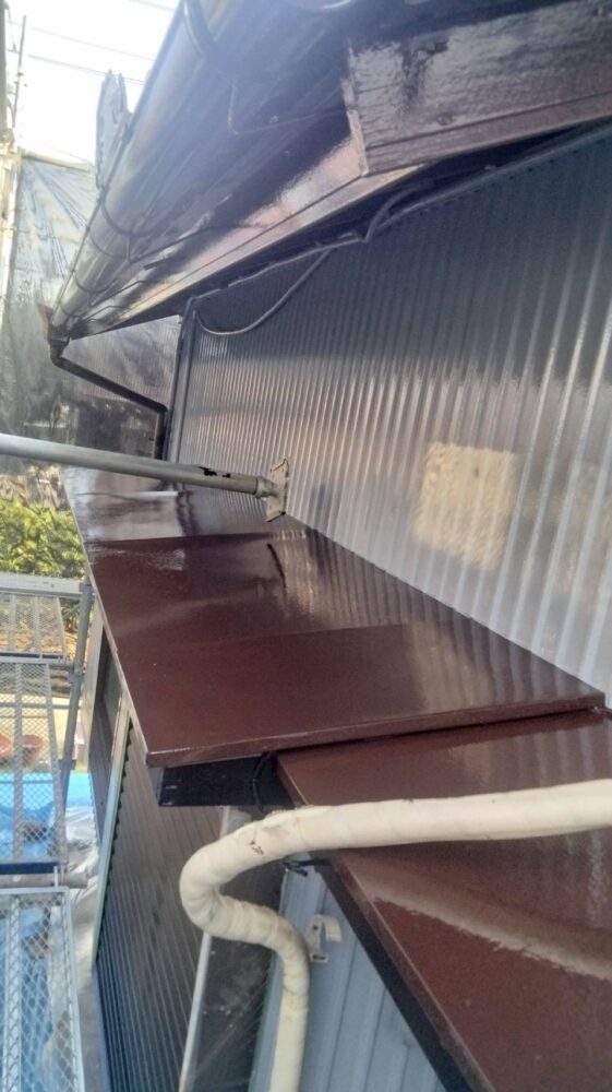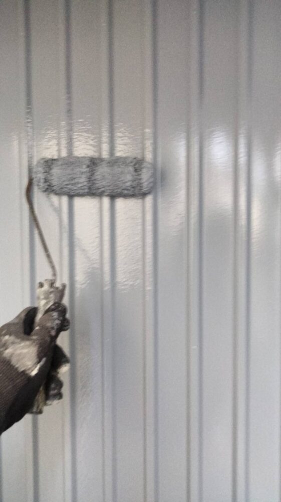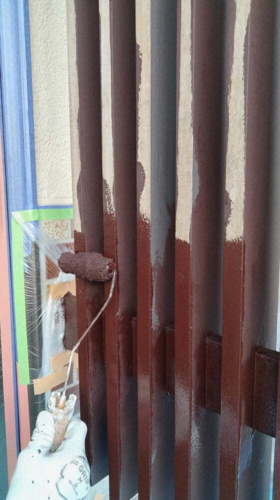 金属部の錆止め塗料を塗布します。錆の発生を抑制する効果があります。錆止め塗装