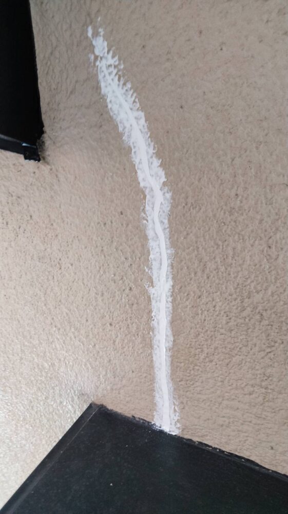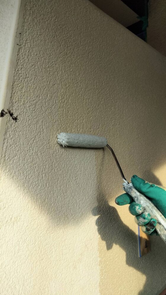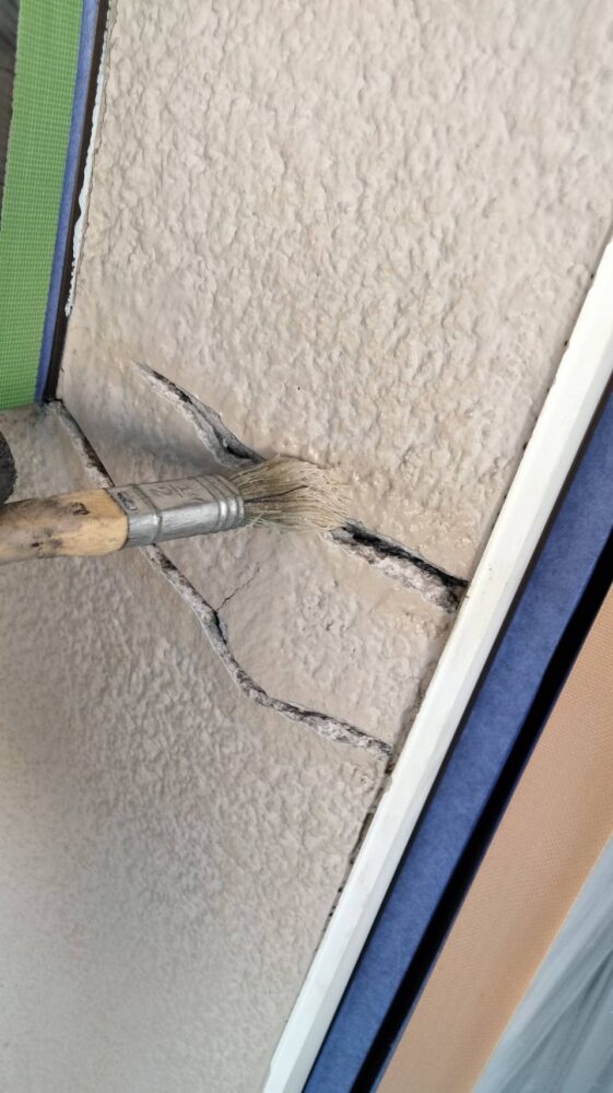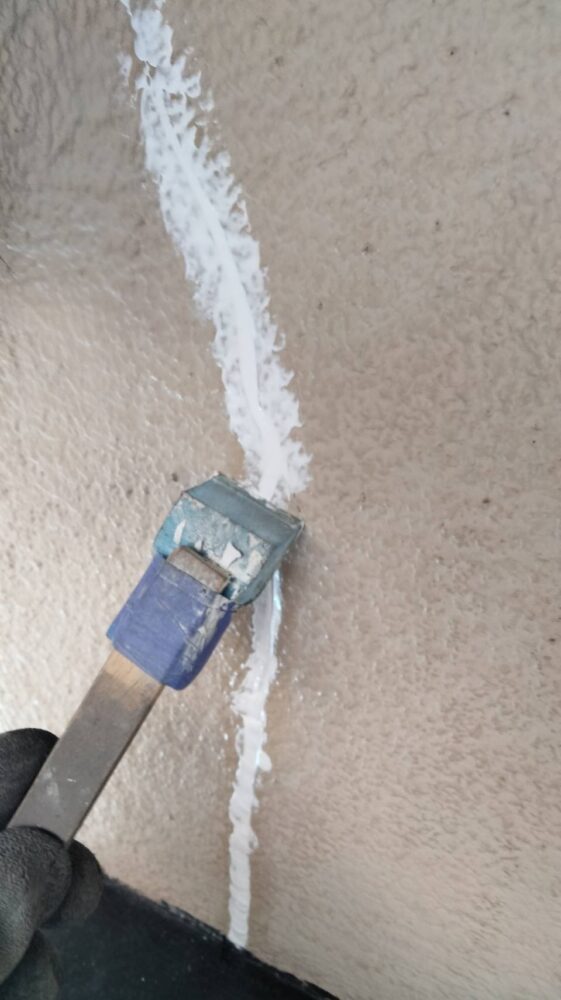 新しいシーリング材をヘラでならしながら塗布します。外壁補修