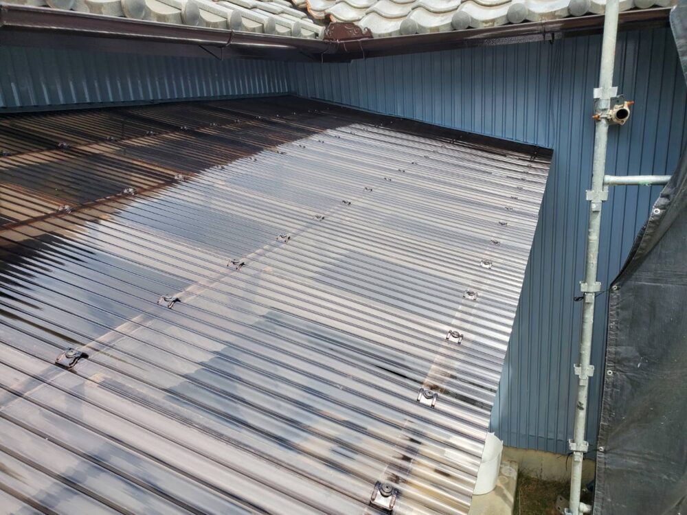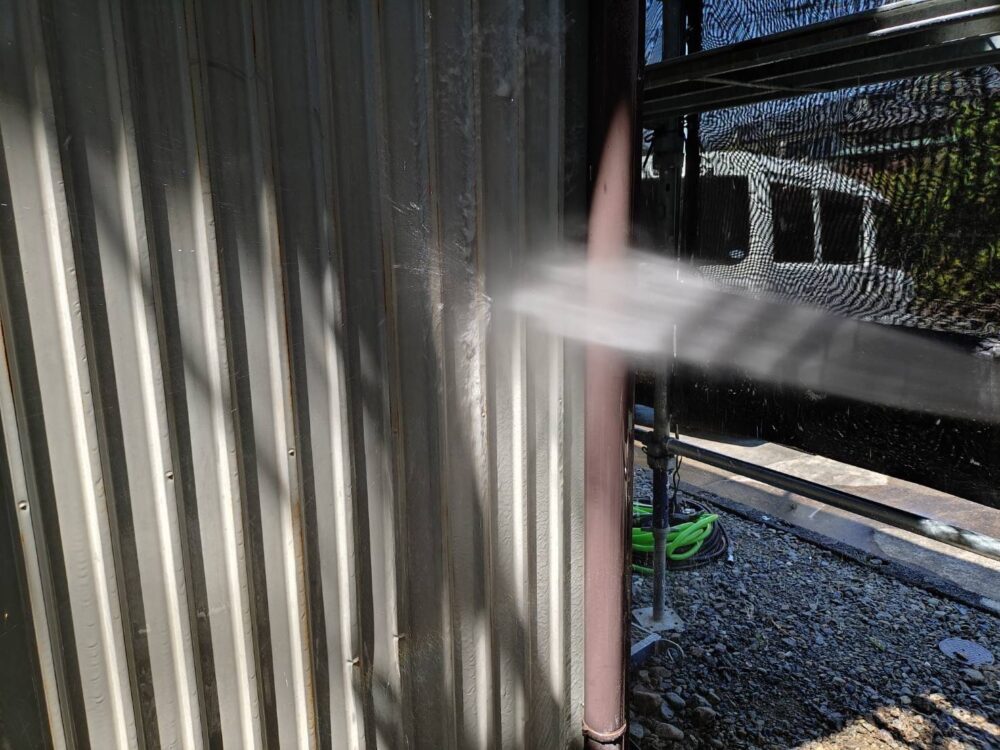 高圧洗浄を行います。古い塗膜や汚れをしっかり落とします。ケレン