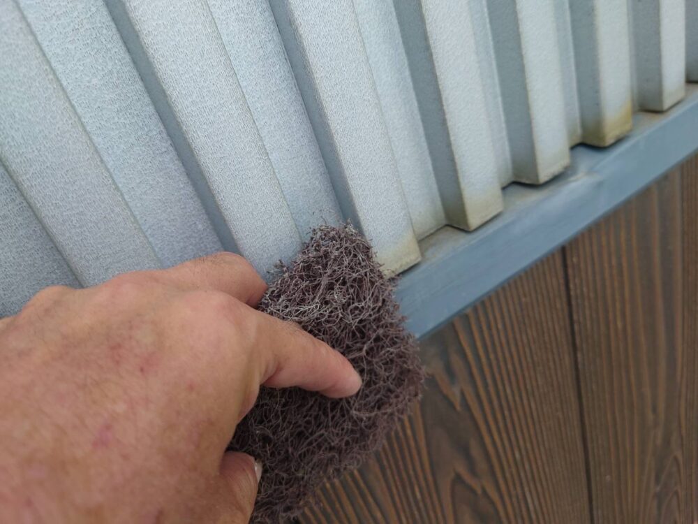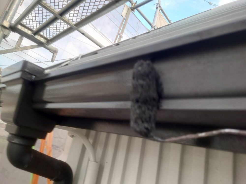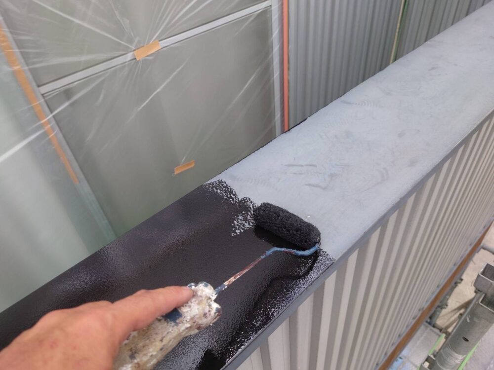 付帯部の塗装に入ります。錆止め塗料を塗布した後、同様に中塗り・上塗りと塗装します。付帯部塗装