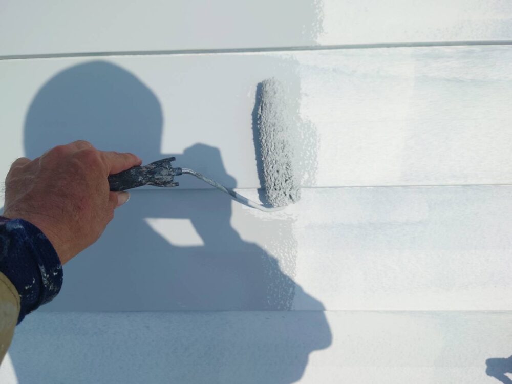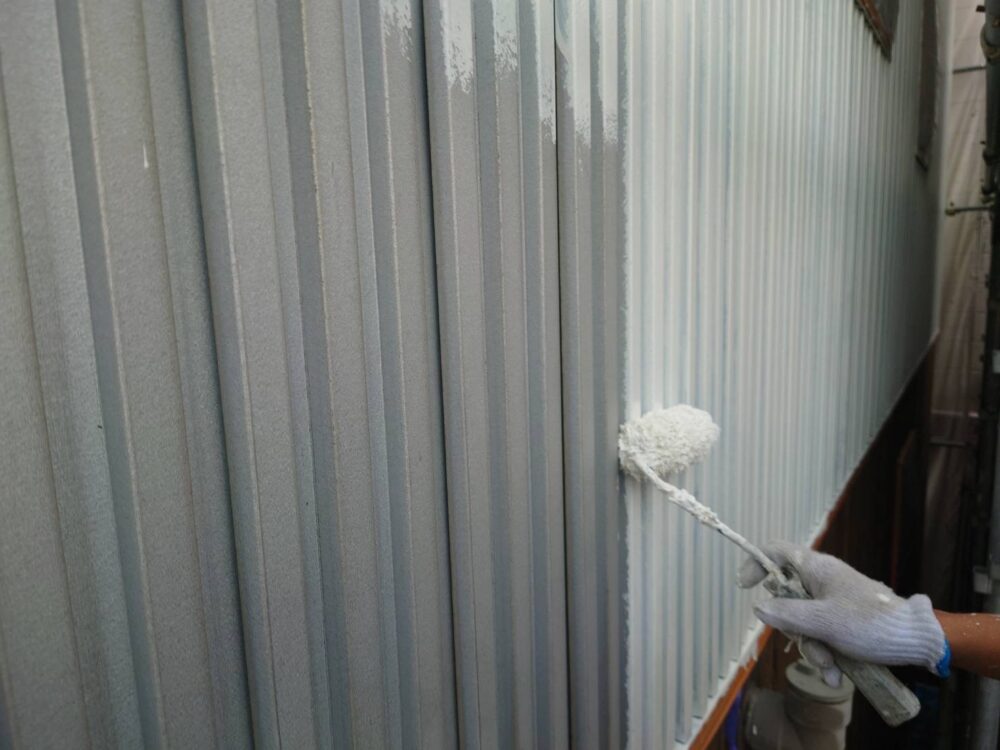 屋根の下塗りです。金属屋根なので同様に防錆効果のある下塗り材を使用します。屋根塗装