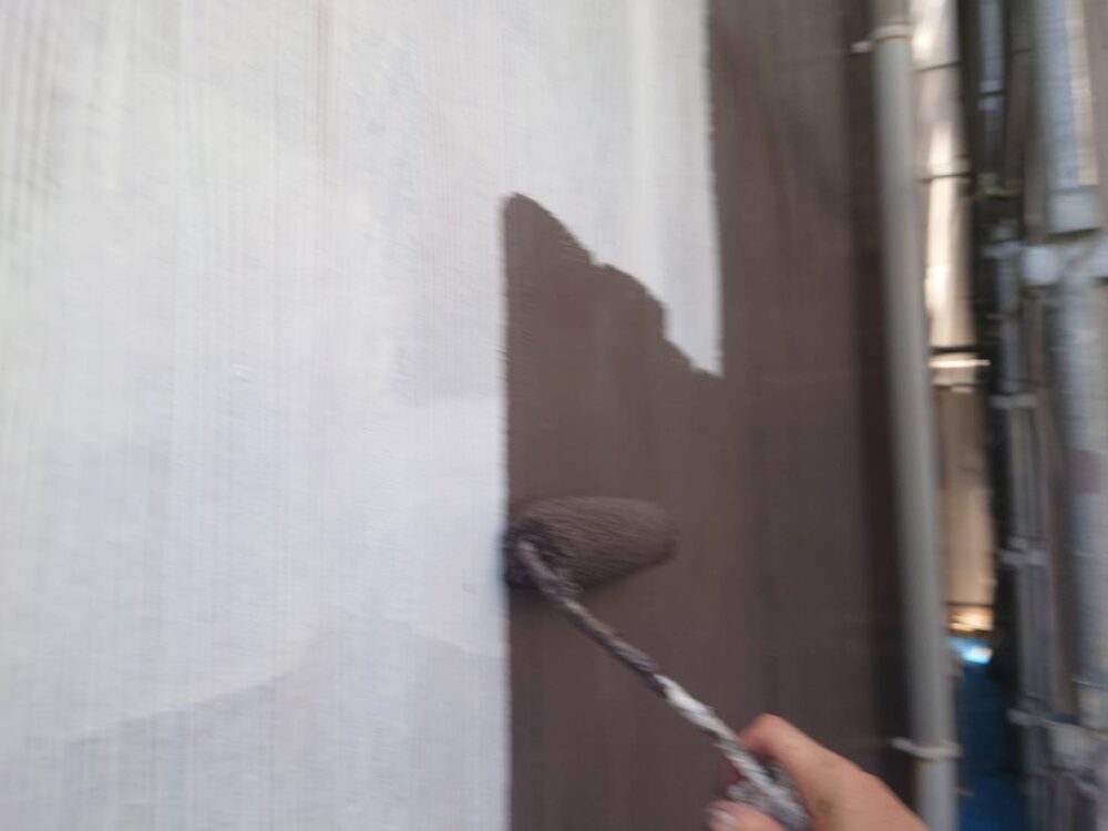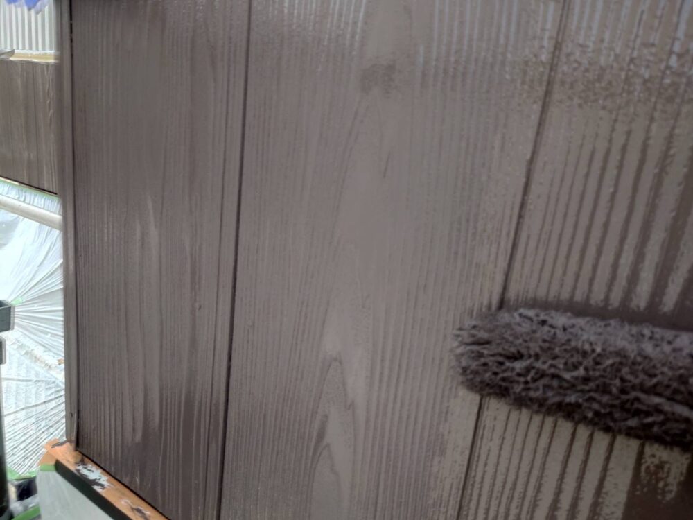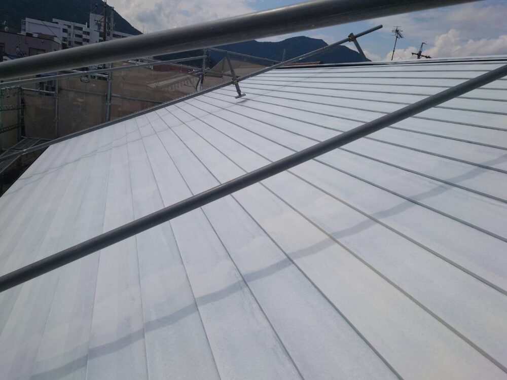屋根の中塗りを行います。仕上げ塗料は2回に分けて塗布するのが基本です。この後、上塗りを行いました。外壁塗装
