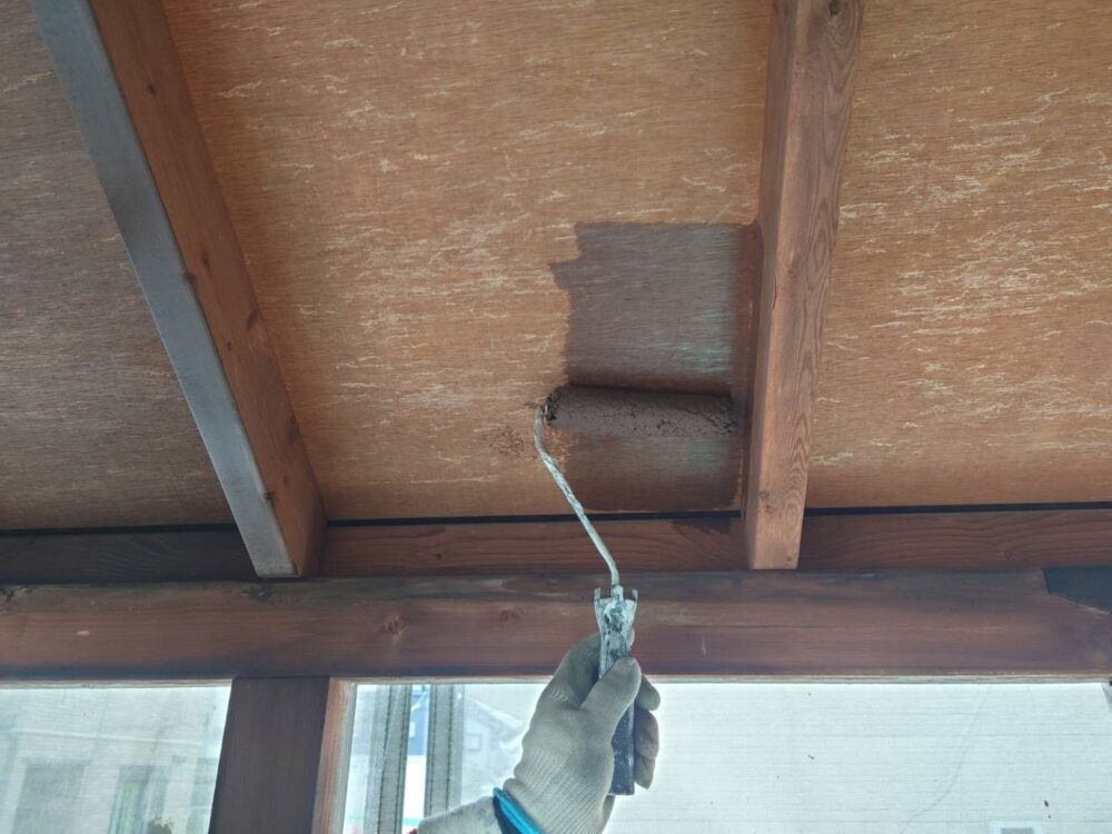 外壁のビス止め補修など、まずは補修作業を丁寧に行っていきます。軒天塗装