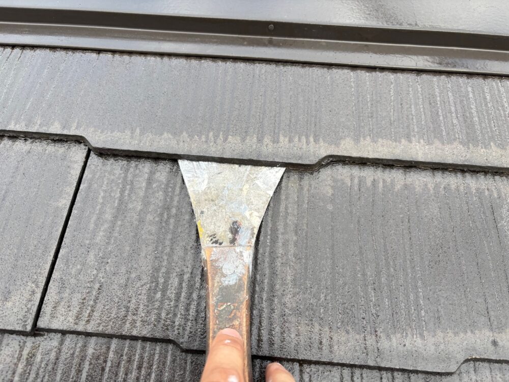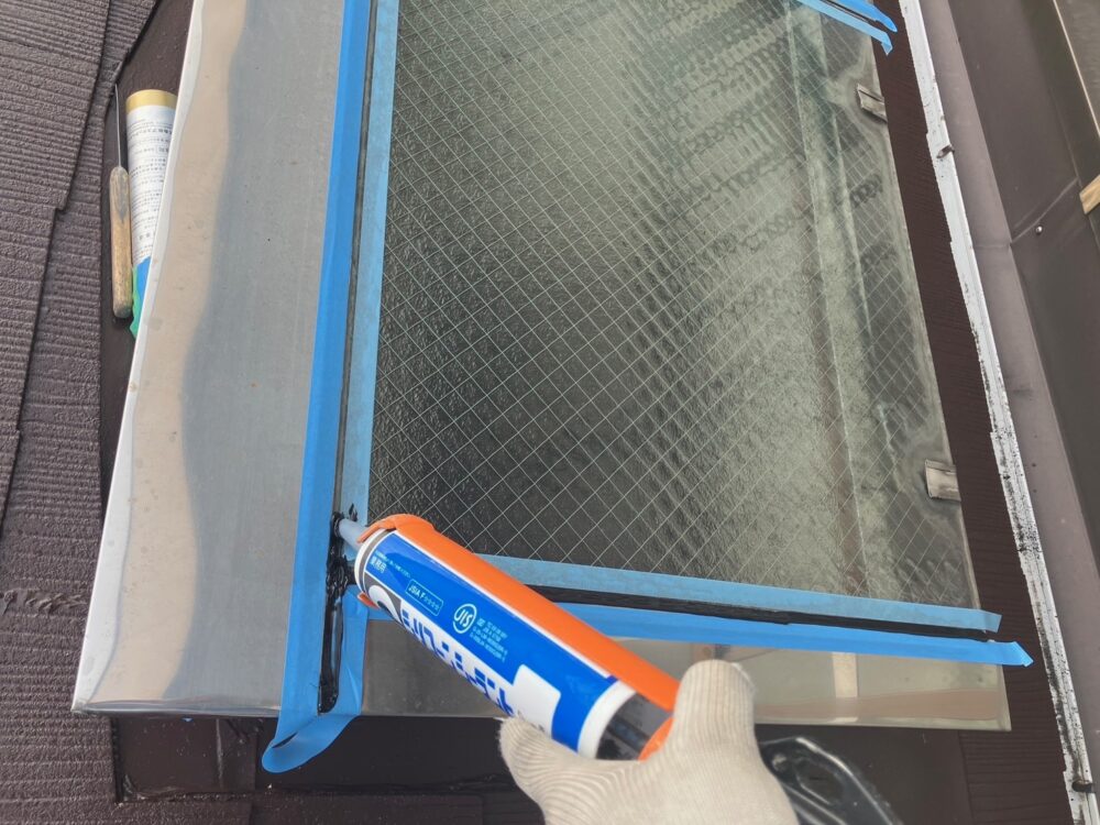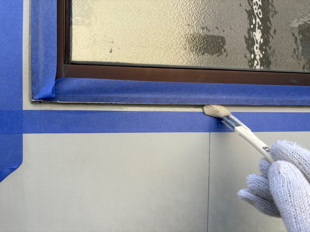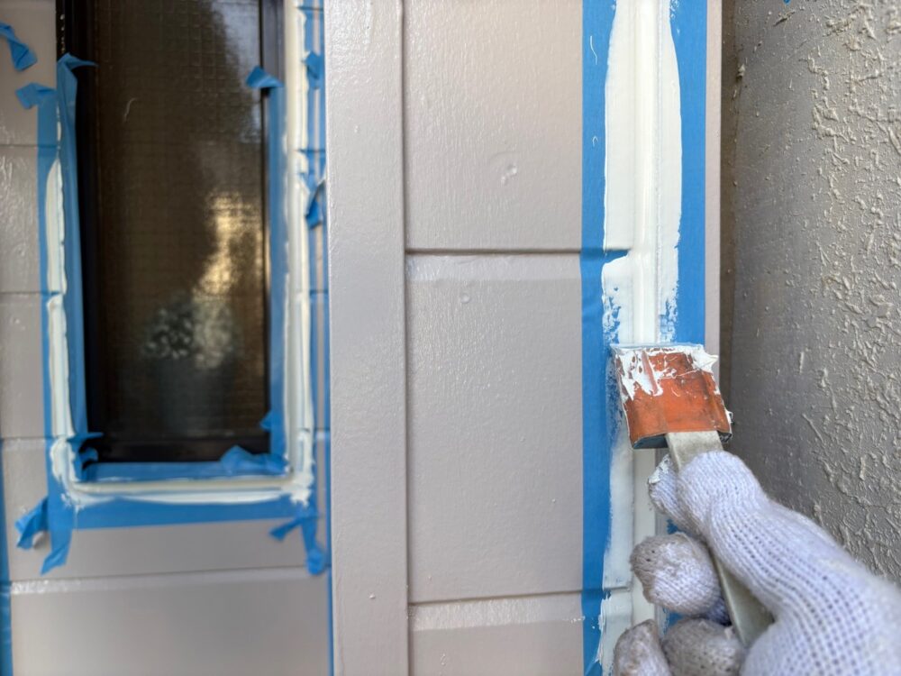 新しいシーリング材をヘラでならしながら塗布します。シーリング工事