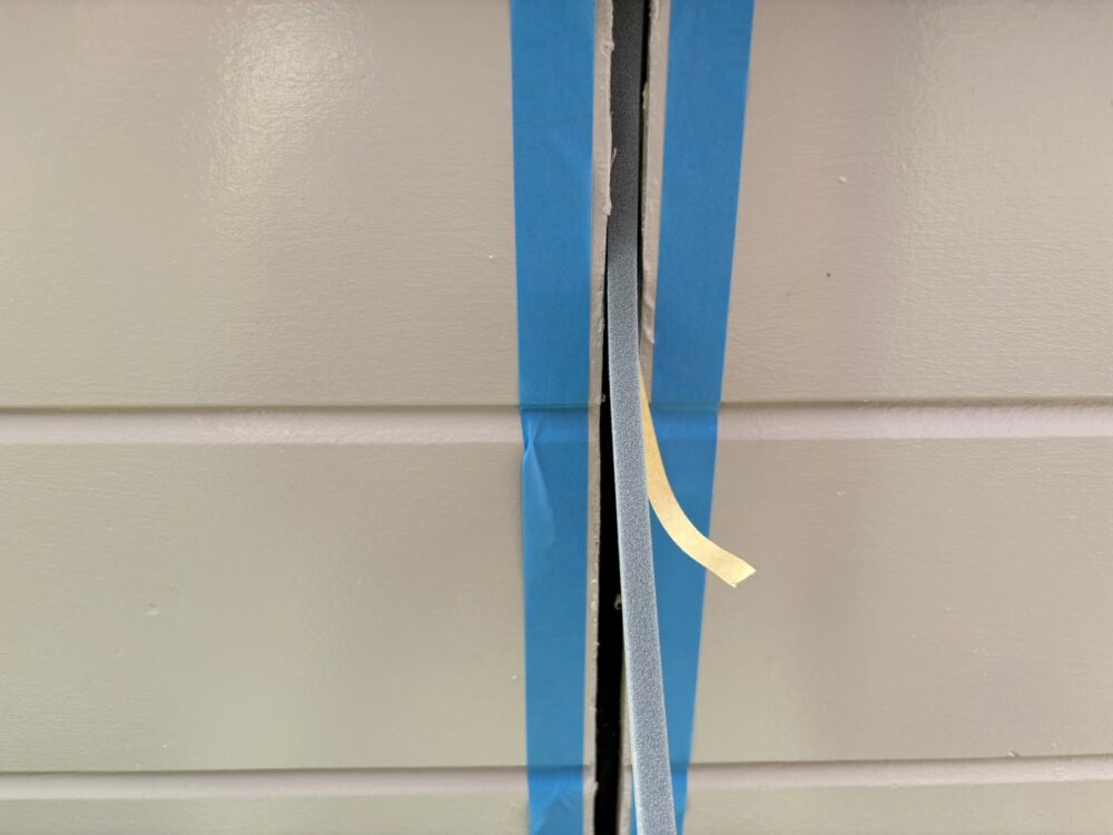 外壁シーリング工事をします。既存のシーリングを切り取ります。シーリング工事