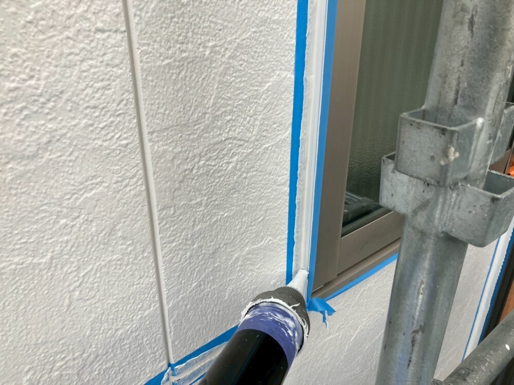 シーリング工事を行います。サッシ廻りは増し打ち工法で仕上げます。