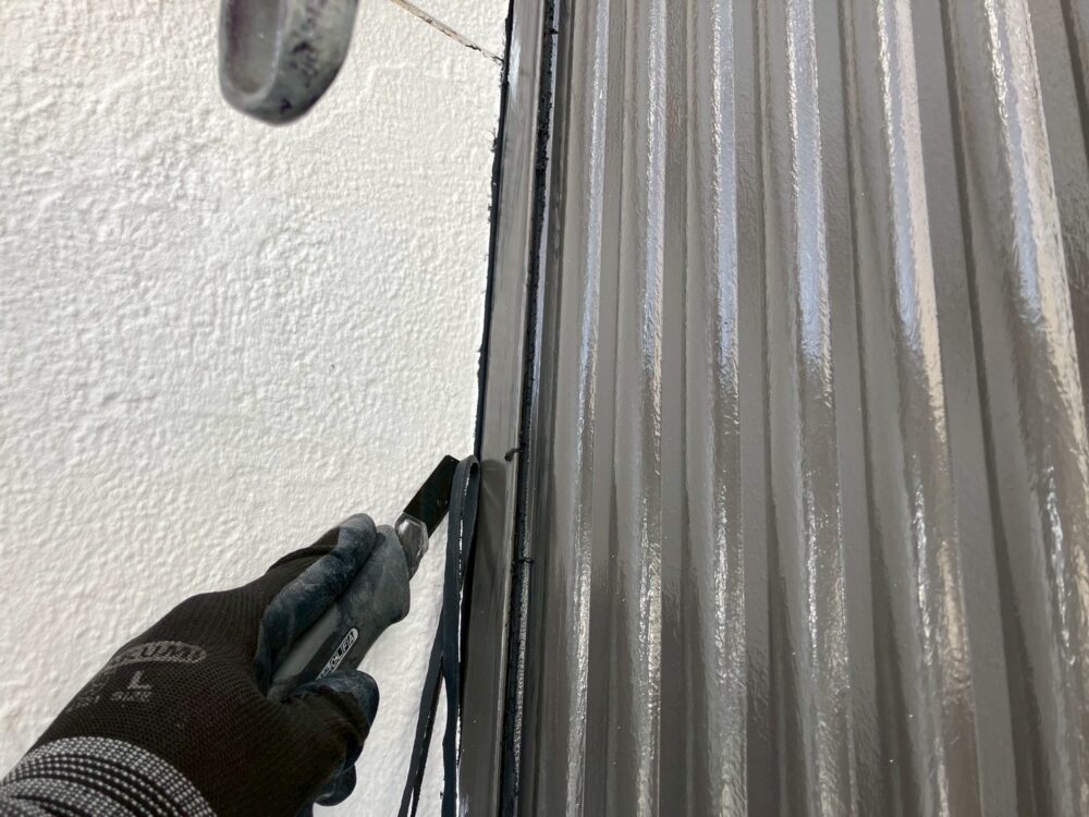 その他の部分は打ち替え工法にて仕上げます。まずカッター等で既存のシーリング材を切り取ります。