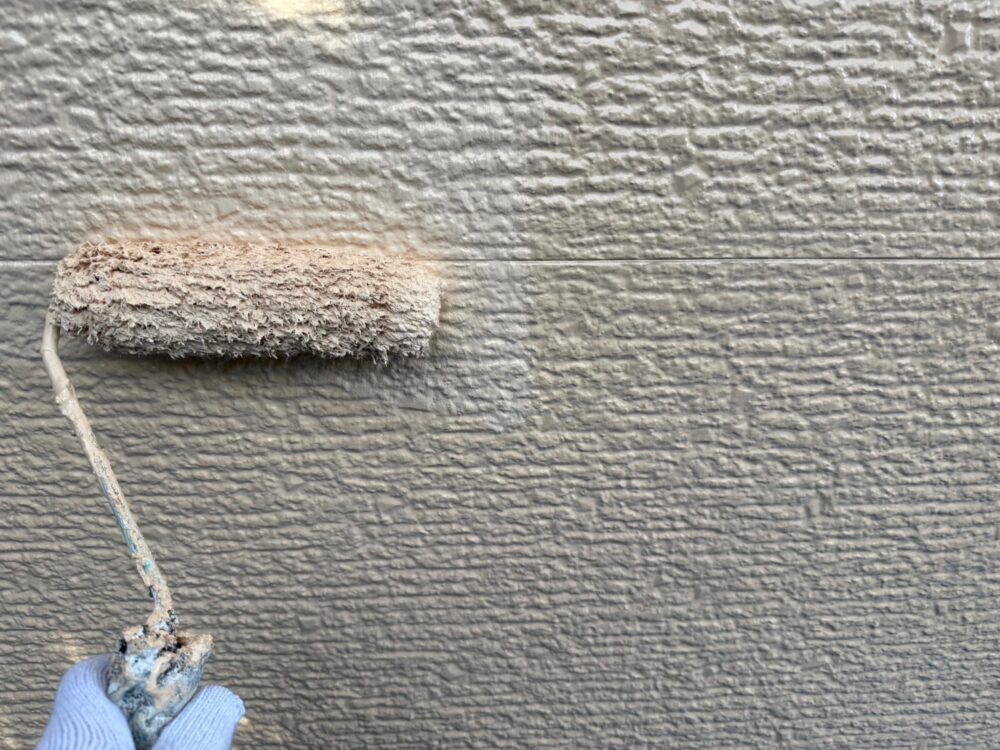 外壁塗装に入ります。まずは屋根同様下塗りから入ります。