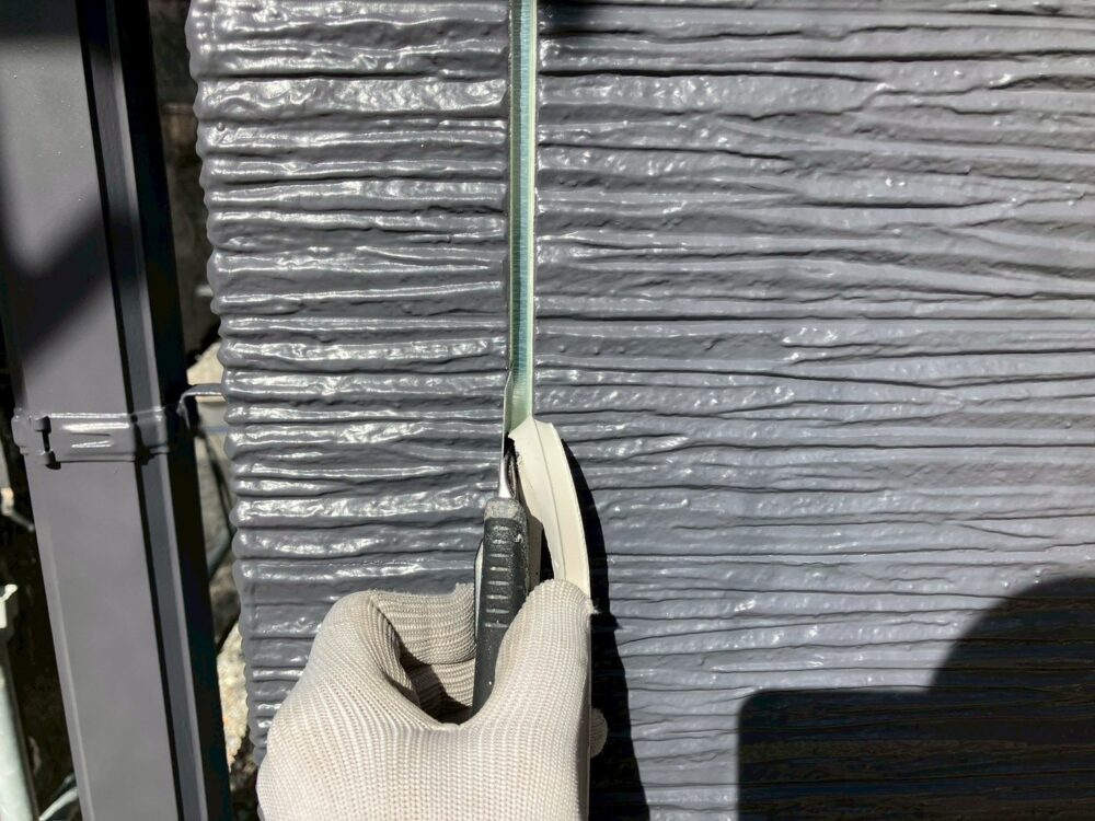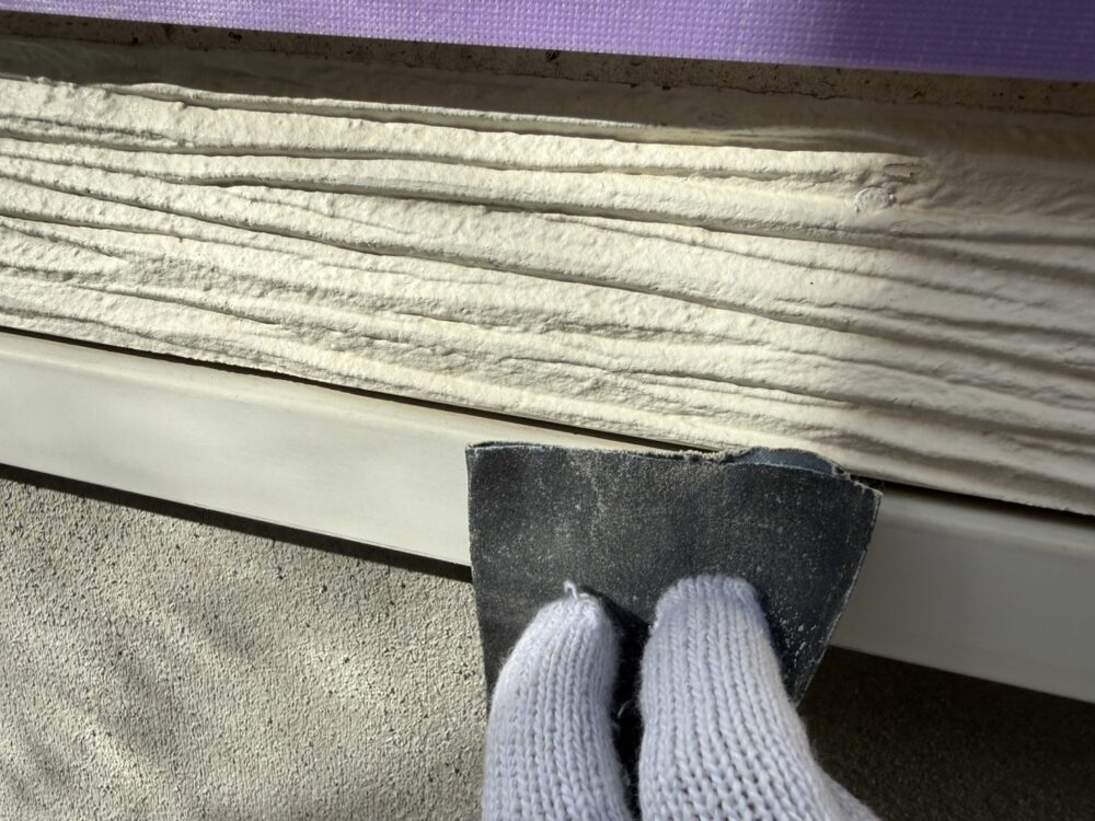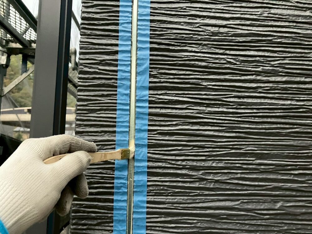 シーリング工事を行います。まずは既存のシーリングをカッターなどで切り取ります。