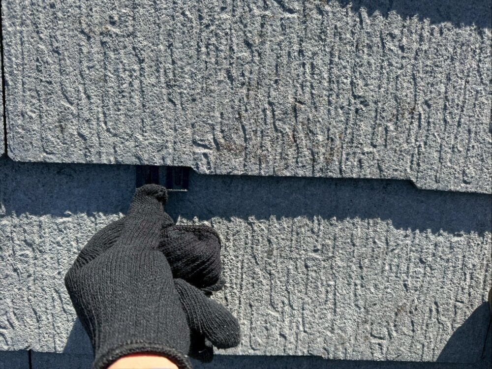 タスペーサー挿入。屋根の重なり目に塗料が入ってしまうと、雨水の排水を妨げてしまします。この作業によってそれを防止できるので、重要な工程です。
