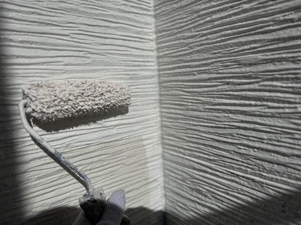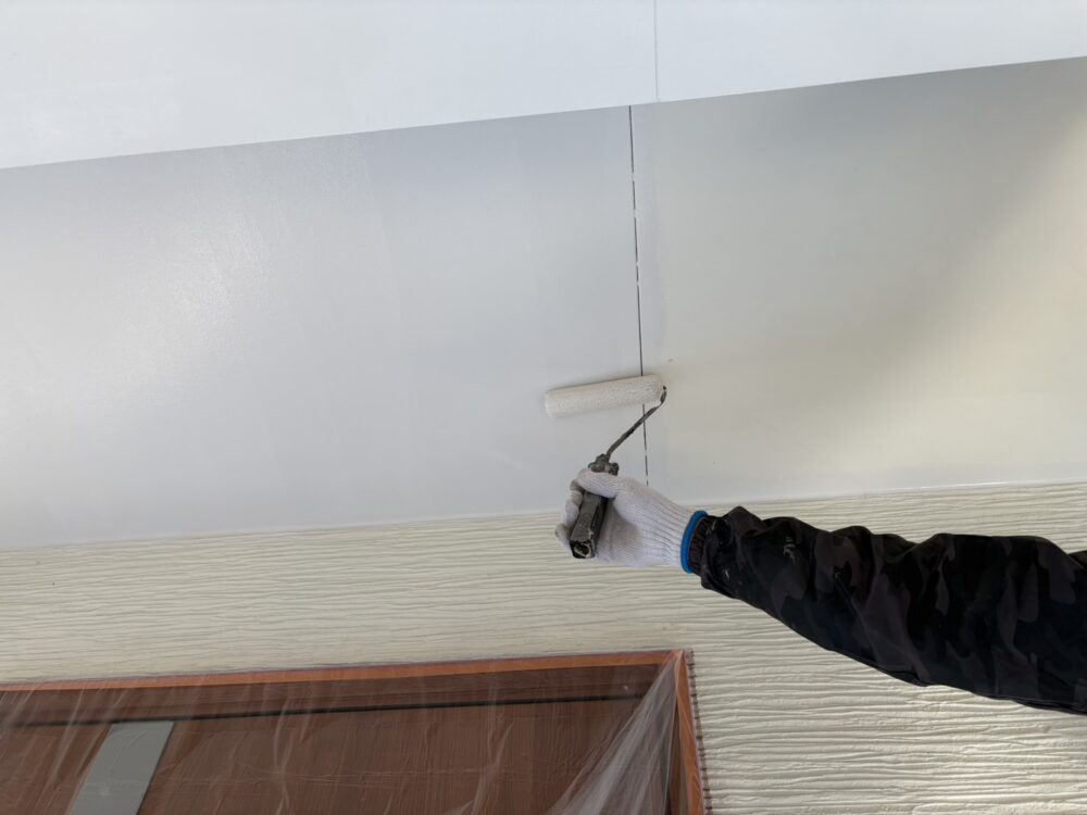 軒天塗装です。中塗り・上塗りと2回塗りで仕上げます。