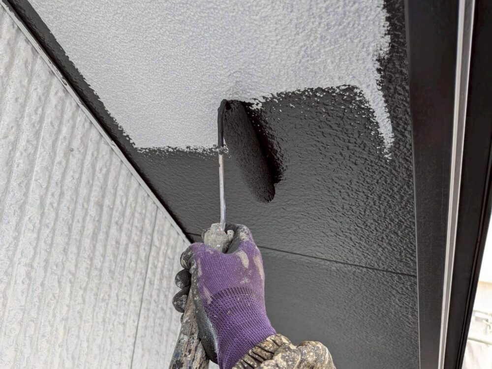 軒天塗装です。中塗り・上塗りと2回塗りで仕上げます。