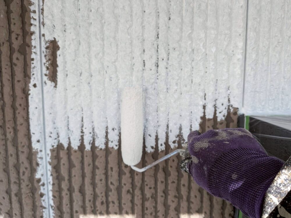 外壁の下塗りを行います。