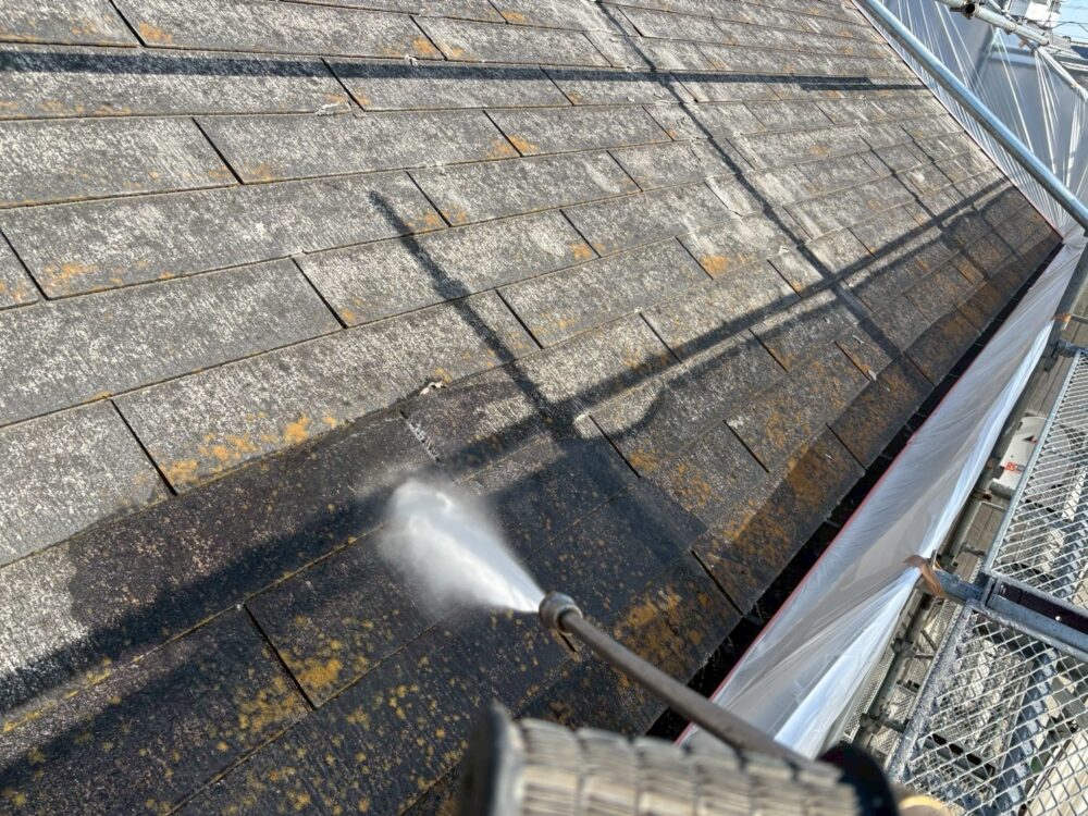 高圧洗浄を行います。汚れをしっかり落とします。
