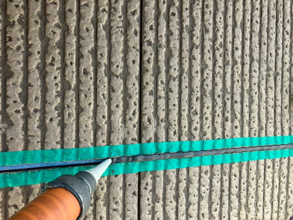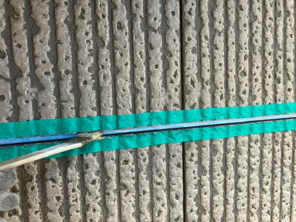 シーリング打ち替え工事を行います。既存のシーリングを切り取り撤去したあと、プライマーを塗布します。