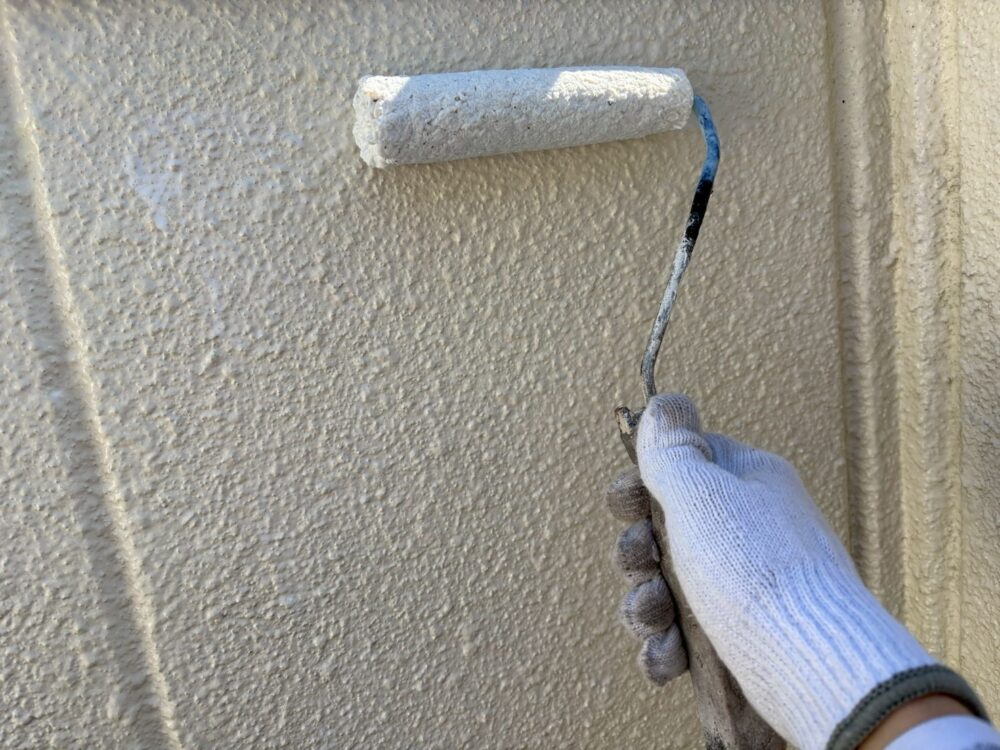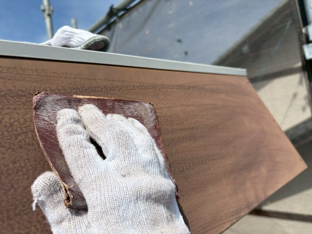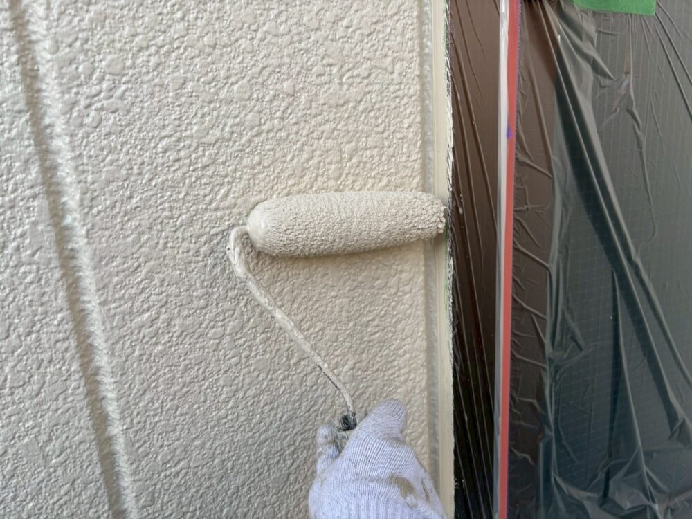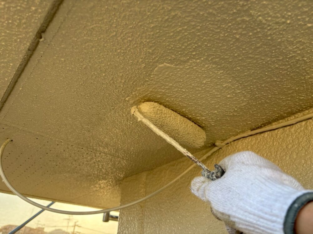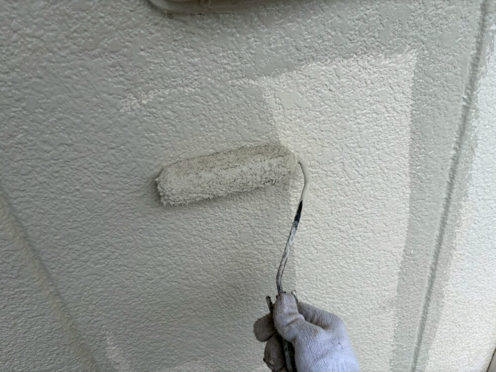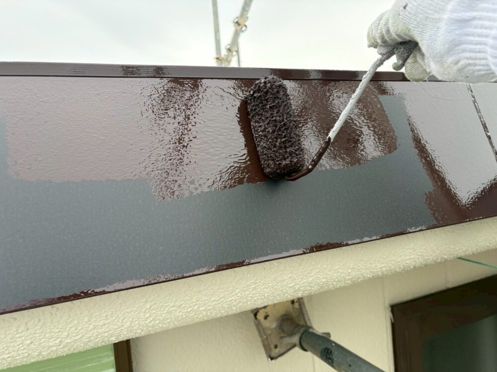 付帯部の中塗りに入ります。付帯部も外壁と同様で、仕上げ塗りは2回に分けて塗布していきます。