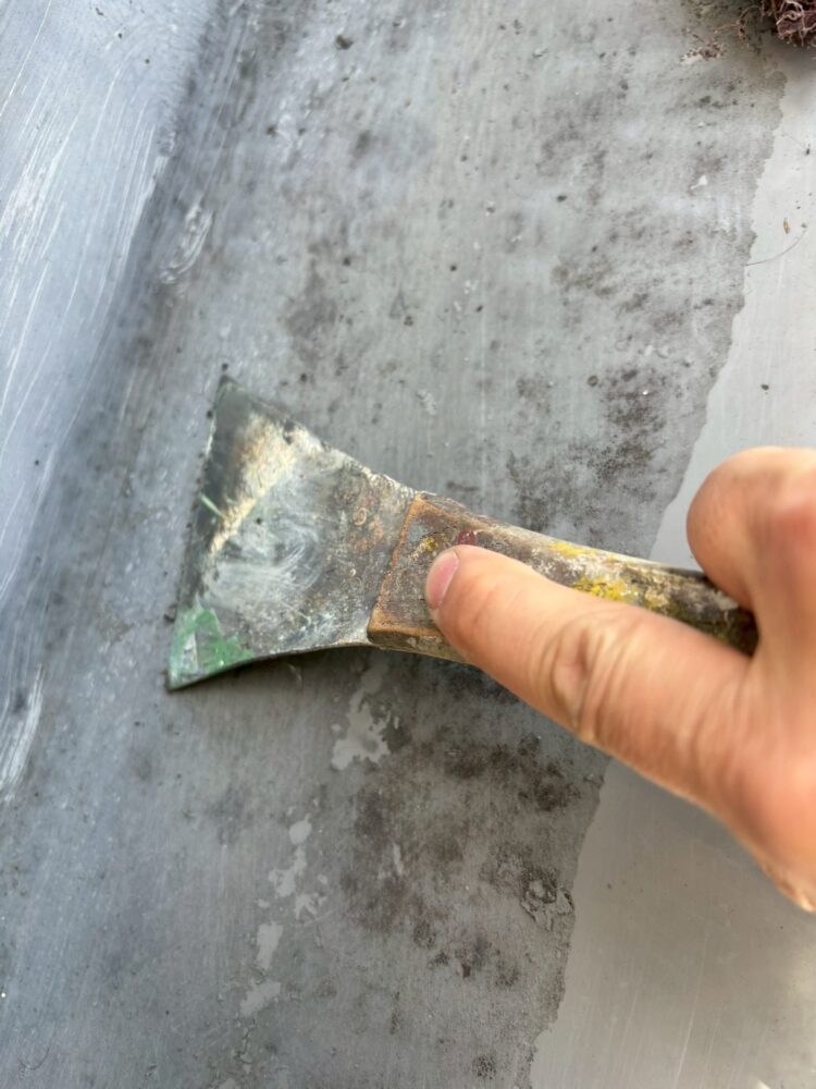 高圧洗浄完了後、板金部分のケレン作業を行います。