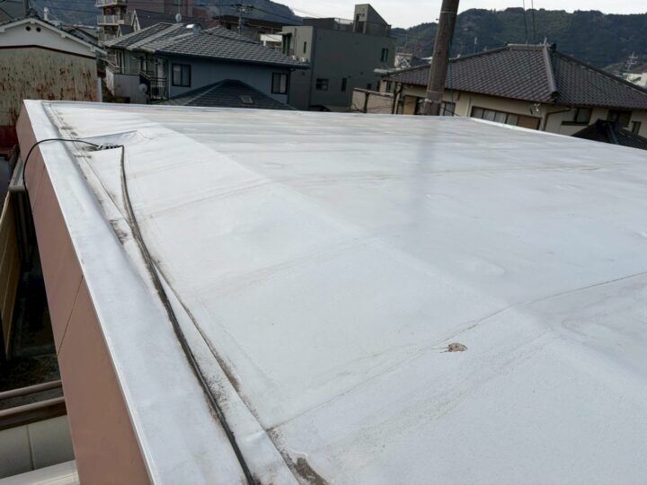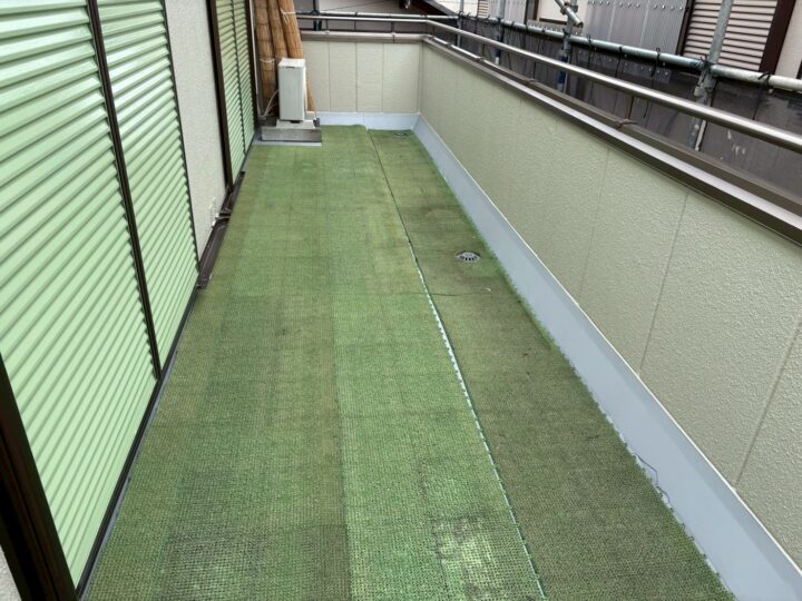 防水トップコート工事を行います。まずは下地処理を丁寧に行います。